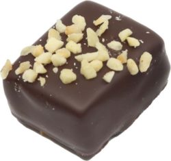 Milk chocolate Crème Brûlèe ganache in white chocolate