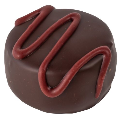 Rich dark chocolate shell, filled with sour, sweet, runny cherry fondant cream. Vegan.