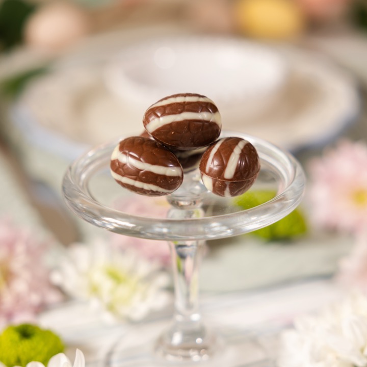Six milk chocolate eggs filled with cookie dough ganache, elegantly presented in a clear gift bag finished off with a satin ribbon.