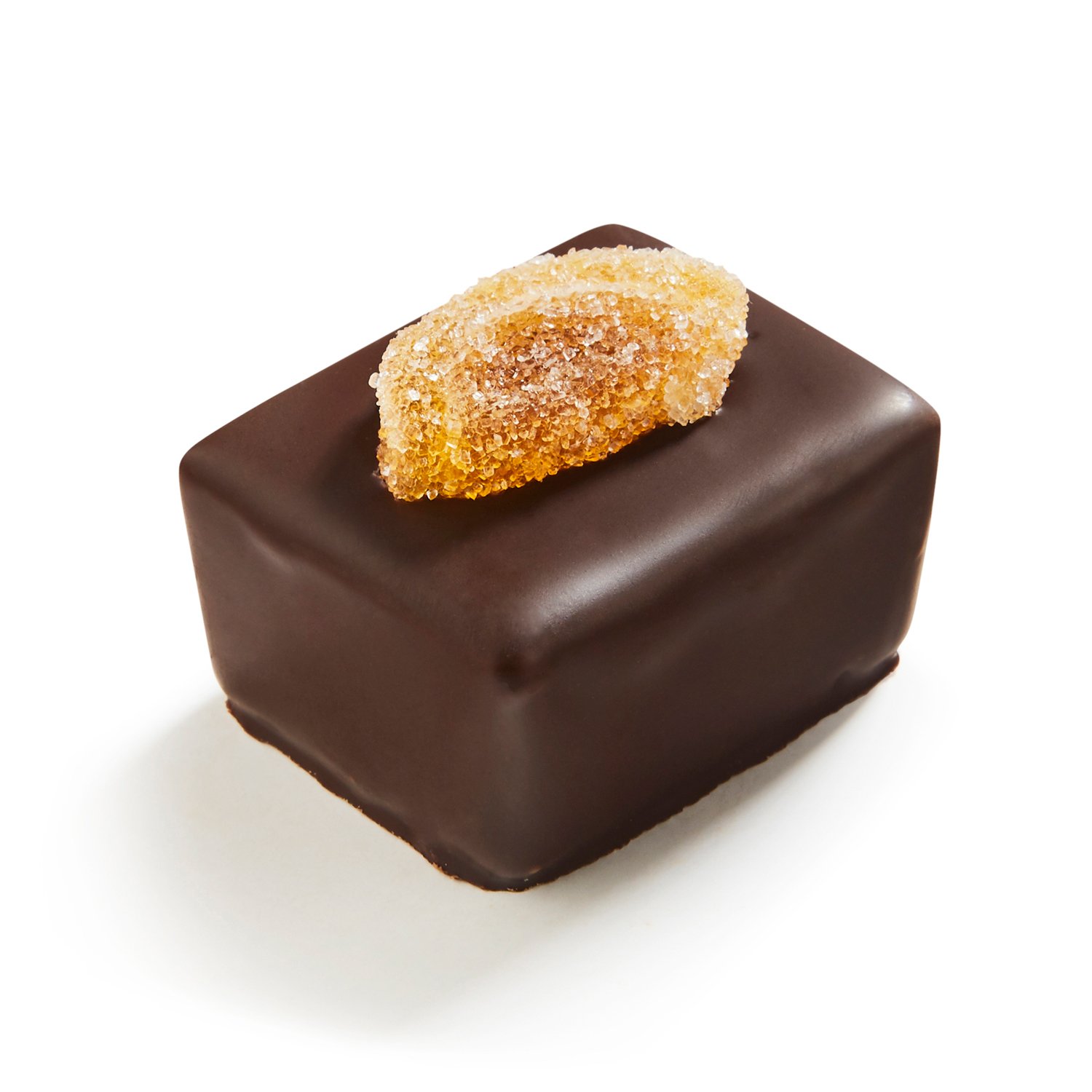 Dark chocolate hazelnut praline, infused with orange, enrobed in milk and dark chocolate layers, topped with a crystallised orange slice.