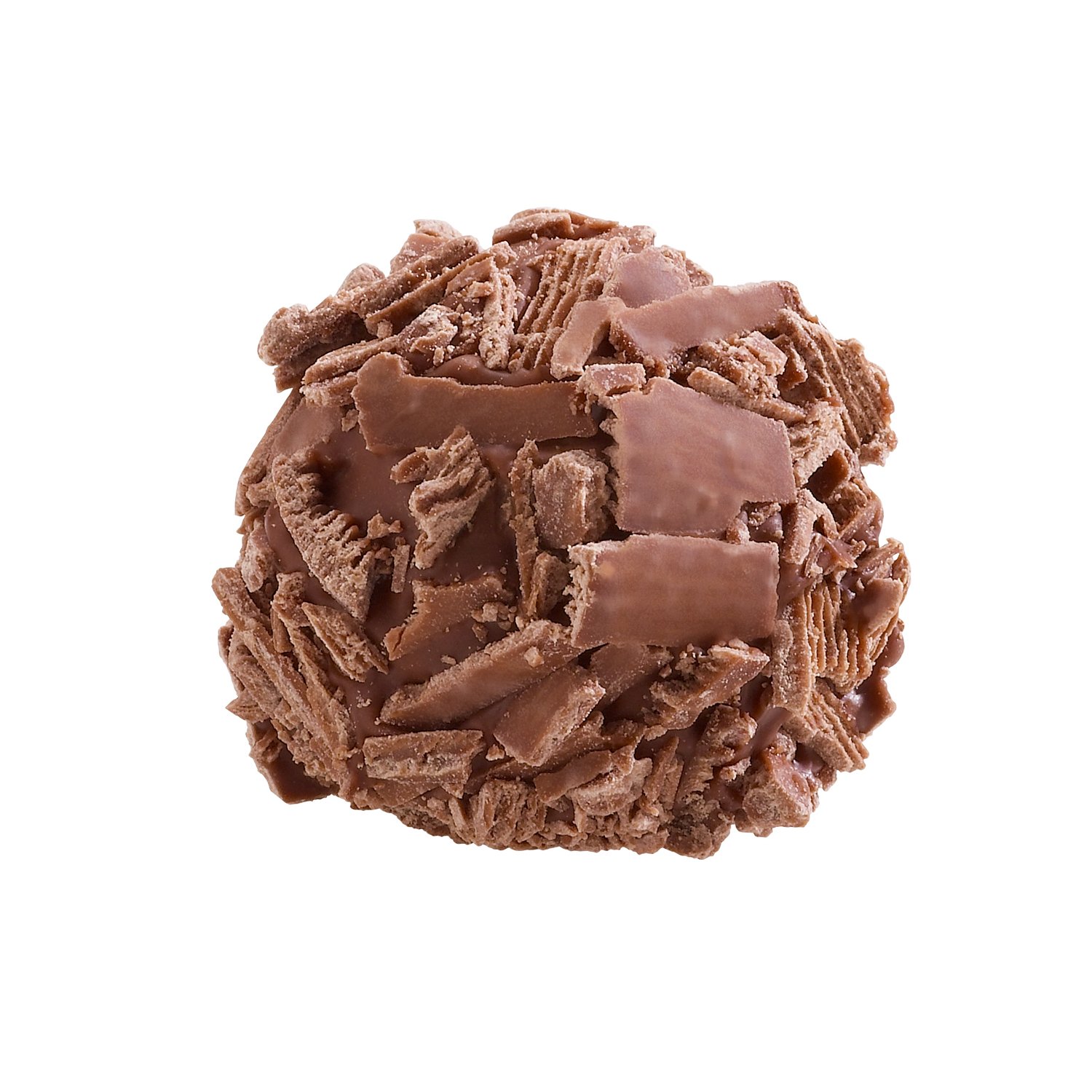 Milk chocolate caramel ganache crunchy with flaked salt, enrobed in milk chocolate flakes.