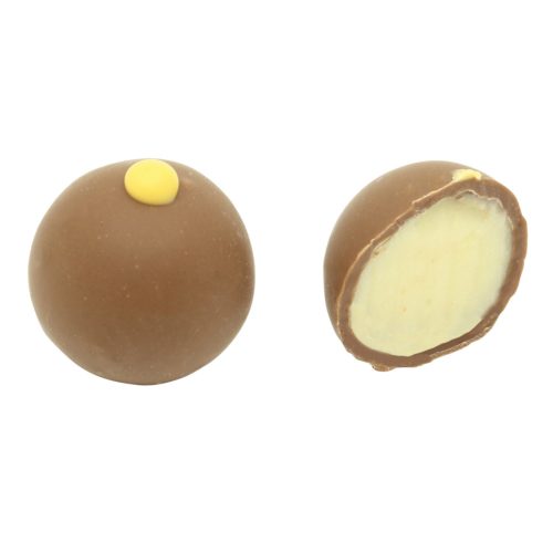 Sweet milk chocolate shell filled with mango and punchy cayenne pepper white chocolate ganache.