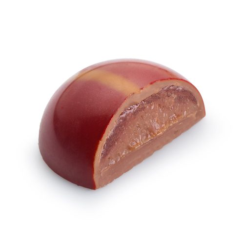 Fresh fruit purée ganache of sharp strawberry and sweet banana in milk chocolate. Smooth, melty, delightful (and no weird fake banana flavour!)
