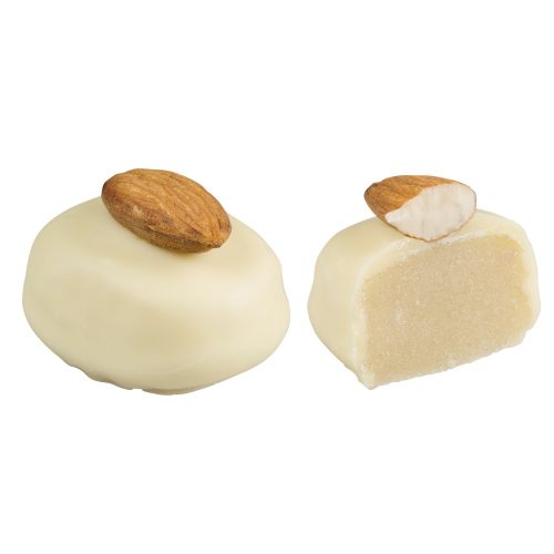 Delicately fragranced almond marzipan, enrobed in a white chocolate shell, and topped with a whole almond.