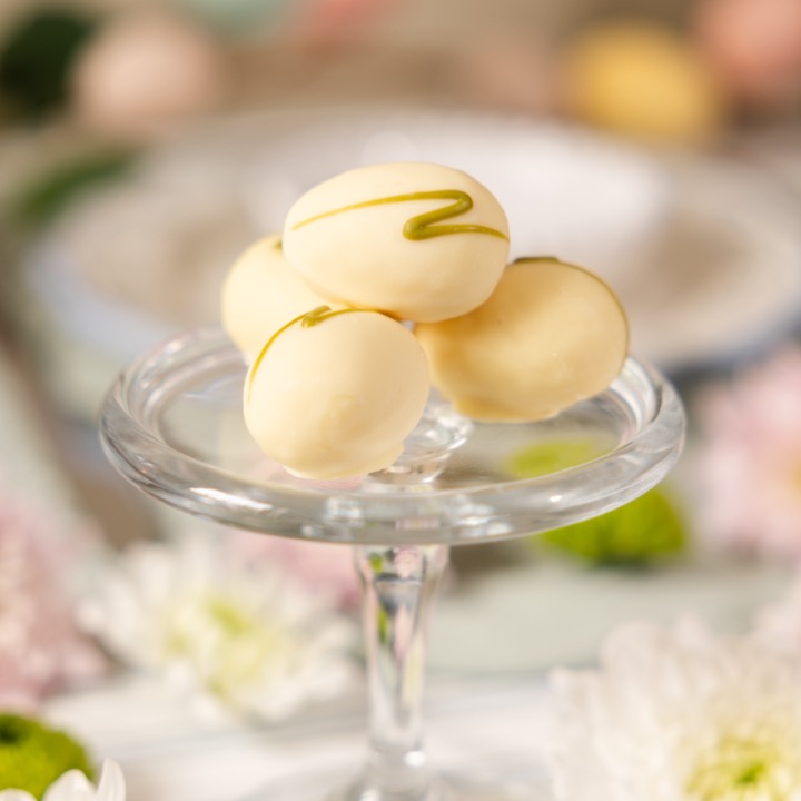 White chocolate egg filled with white chocolate Champagne ganache.
